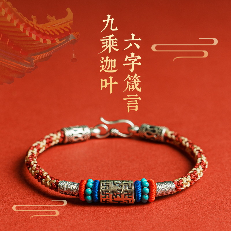 Woven Hand rope nine times Xizang knot red rope female S925 six words auspicious simple style non-fading men's bracelet wholesale