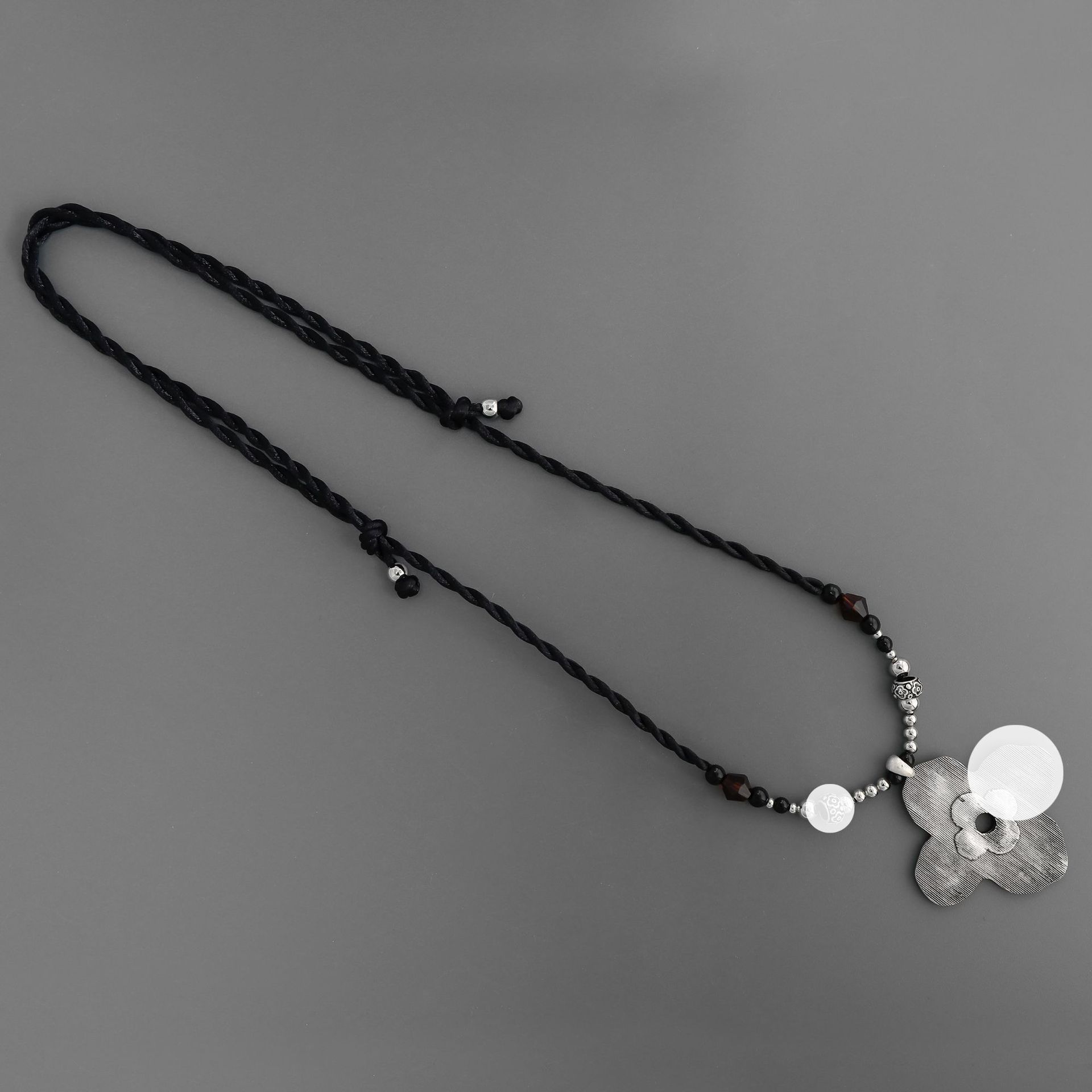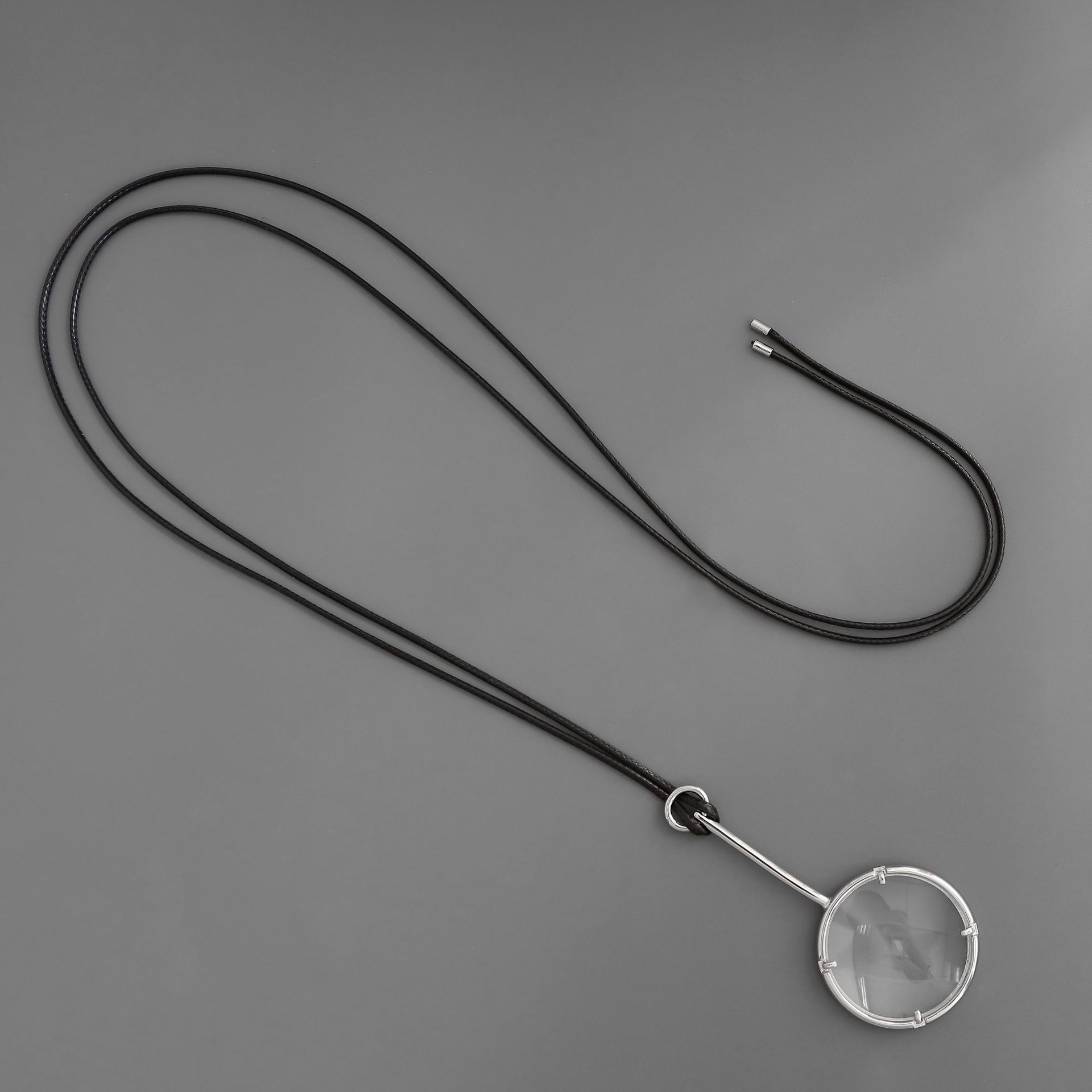 Buha* Home Magnifying Glass Necklace Simple Elegant Niche High-End Korean Wax Rope Long Mirror Black Rope Necklace