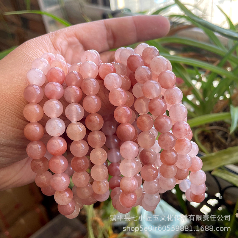 Natural Pink Jade Single Ring Round Bead Bracelet Peach Blossom Stuffed Beaded Jewelry Simple Design Bracelet Spot