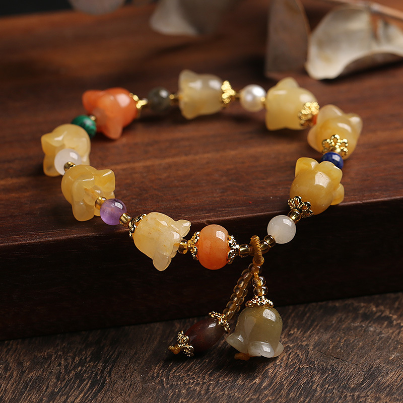 Natural Xinjiang Golden Silk Jade Bracelet Women's Best Friend Jade Bracelet Hanging Golden Silk Jade Linglan Topaz Bracelet Jewelry