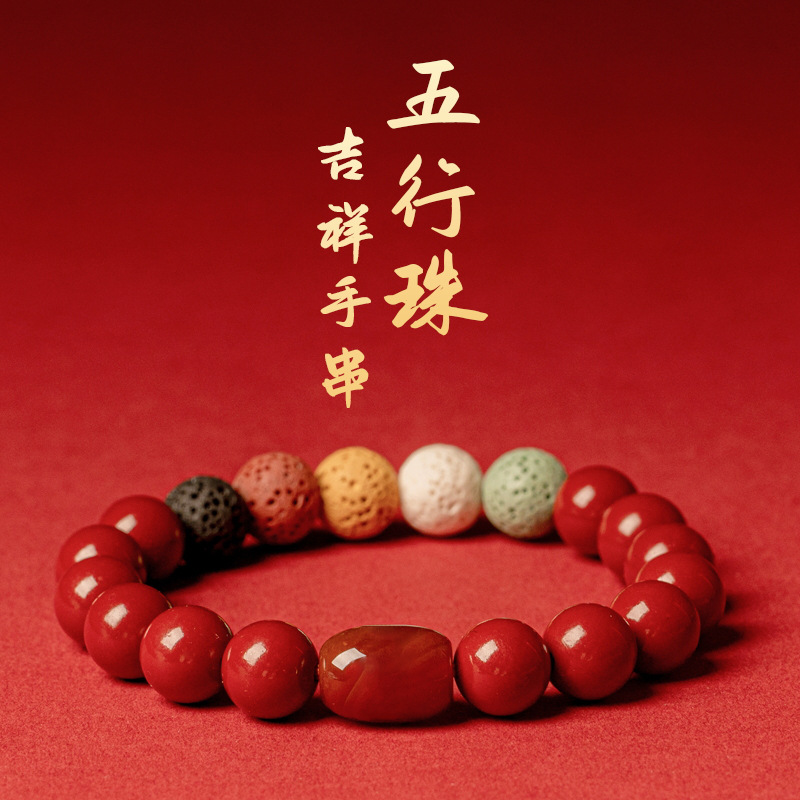 Year of birth cinnabar bracelet five elements Golden Wood water fire soil beaded auspicious bracelet high-grade light luxury men and women couple jewelry