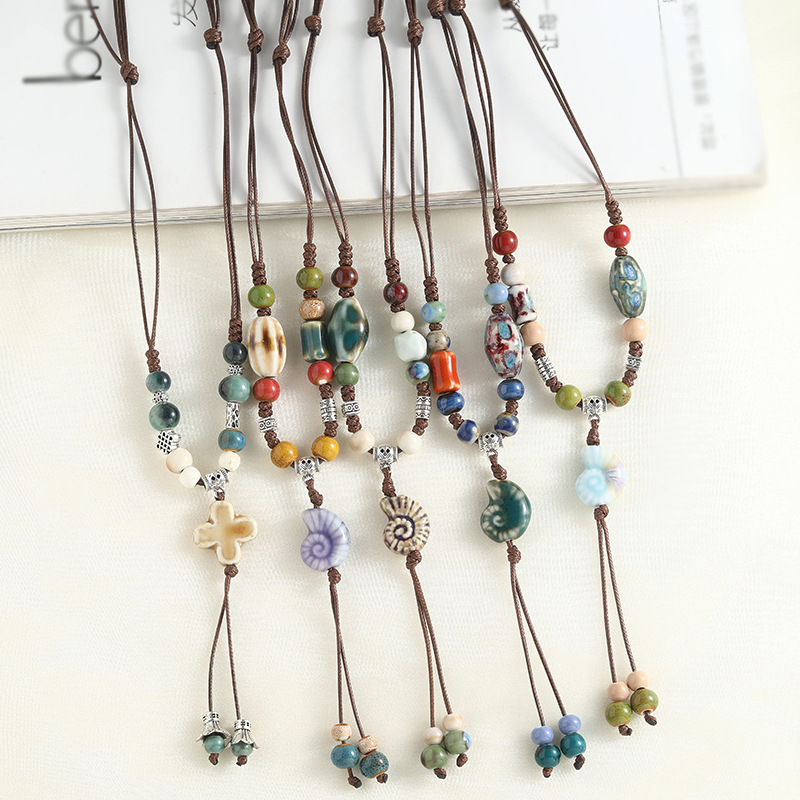 New Chinese-Style Conch Ceramic Necklace Long Women's Retro New Chinese Pendant Lanyard Niche Versatile Sweater Chain