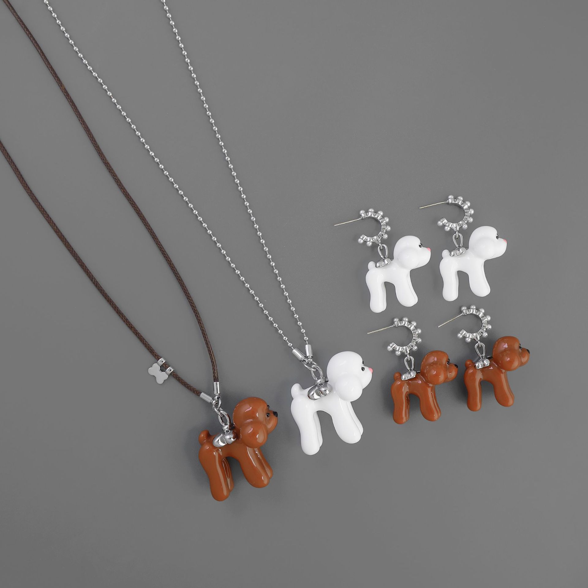 Fwis* Home Party Series Love Teddy Dog Necklace Autumn and Winter Long Easiest for Match Dog Earrings Sweater Chain