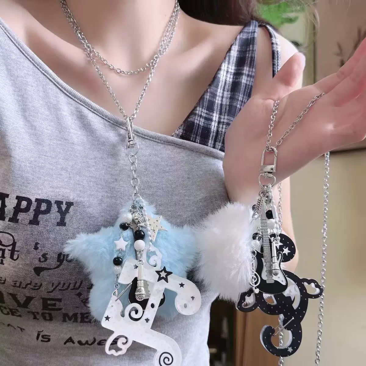 Homemade Star Note Kitten Necklace Cute Subculture Niche Dream Sweater Chain Y2K Accessories Bell Necklace