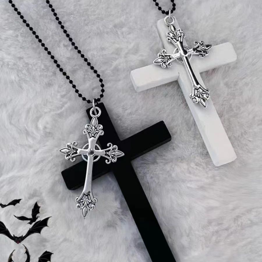 Retro Dark Y2K Subculture Wooden Cross Necklace Men and Women Xiao Qi Necklace Cross Necklace Halloween