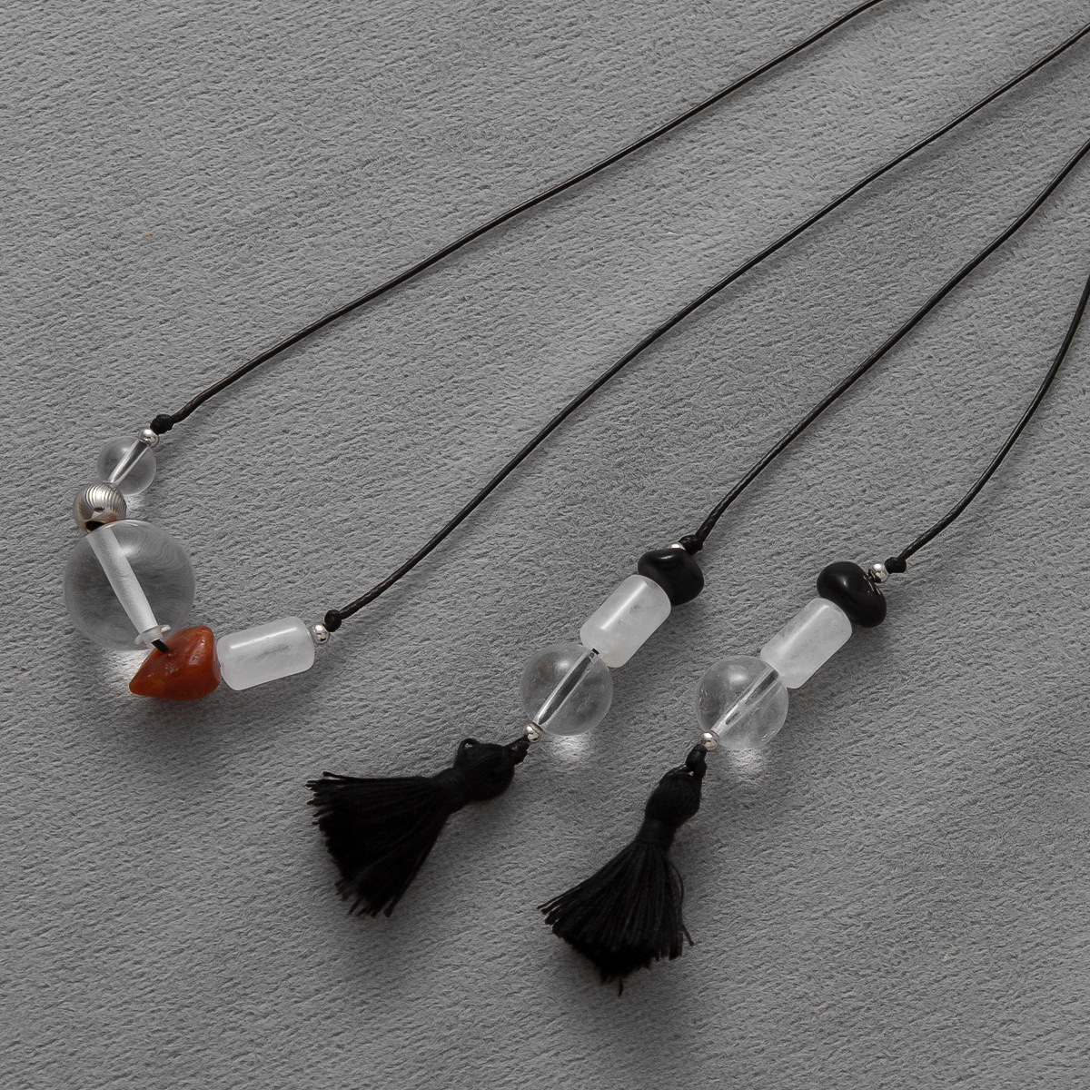 Winter New Glass Crystal Necklace Light Luxury Niche Simple Cold Ins Style Black Rope Long Tassel Woolen Chain