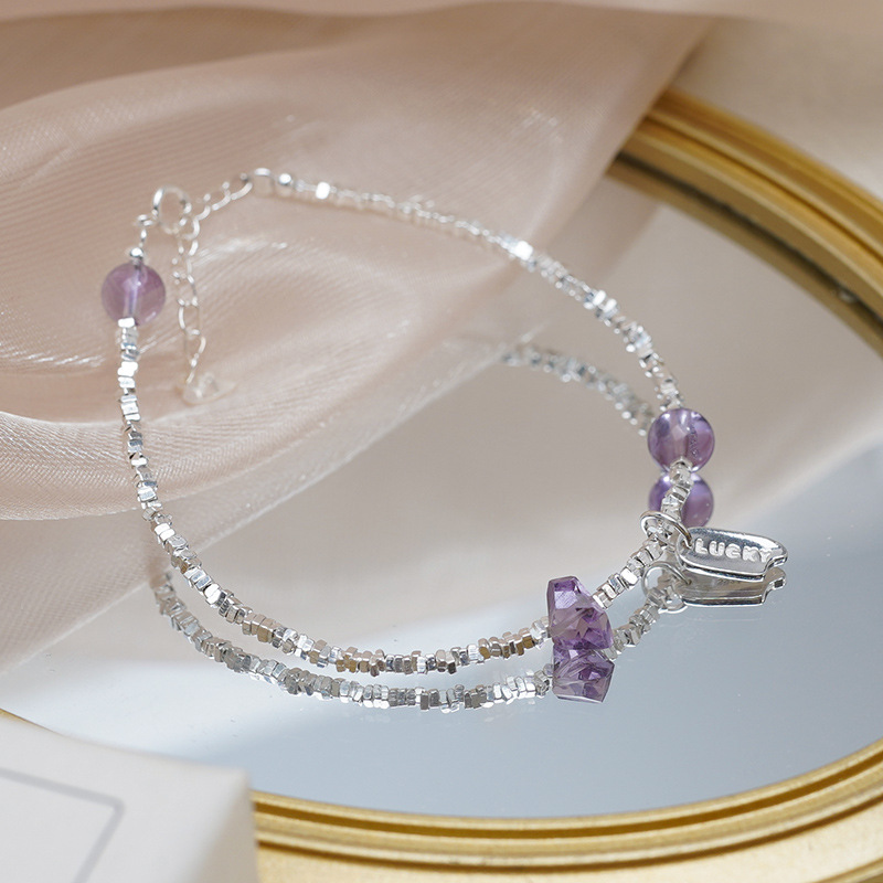 Niche Accessible Luxury Fashionable Amethyst Broken Silver Luck Bracelet 925 Silver Elegant Gentle French Bracelet 50530
