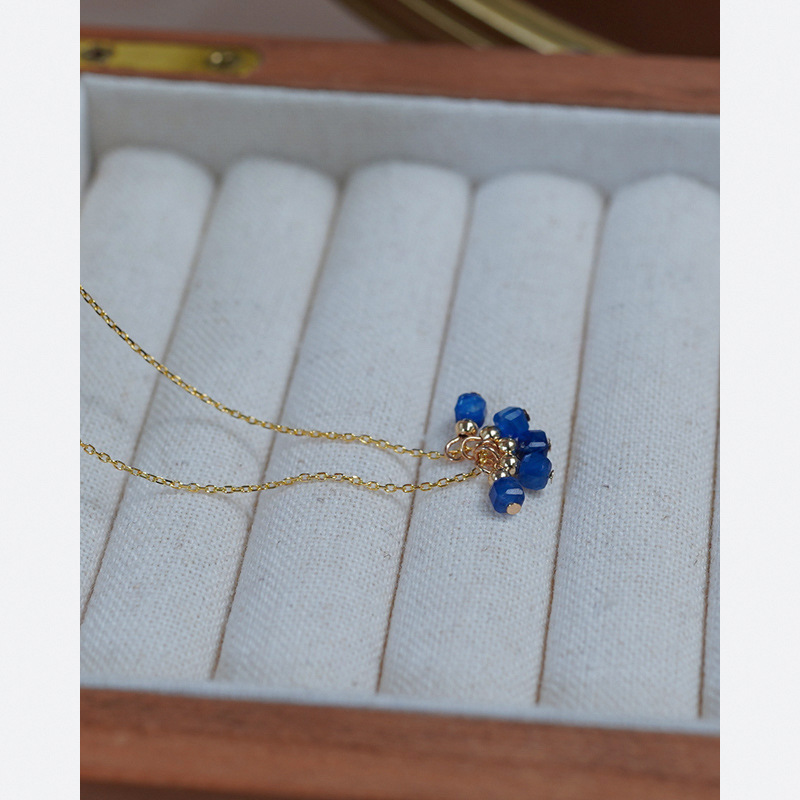 French Retro Five Kyanite Sugar Cube Necklace 925 Sterling Silver Niche Design Clavicle Chain Girl Trend 50239