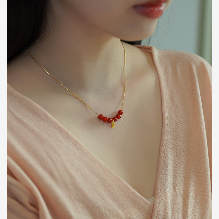 Light Luxury Gentle Retro Red Agate Fortune Pendant Necklace 925 Sterling Silver Elegant Clavicle Chain Women's 41198