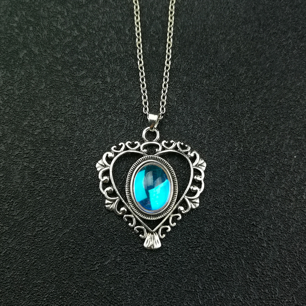 Cross-border jewelry wholesale hollow imitation Moonstone love pendant necklace women retro Bohemian lace jewelry
