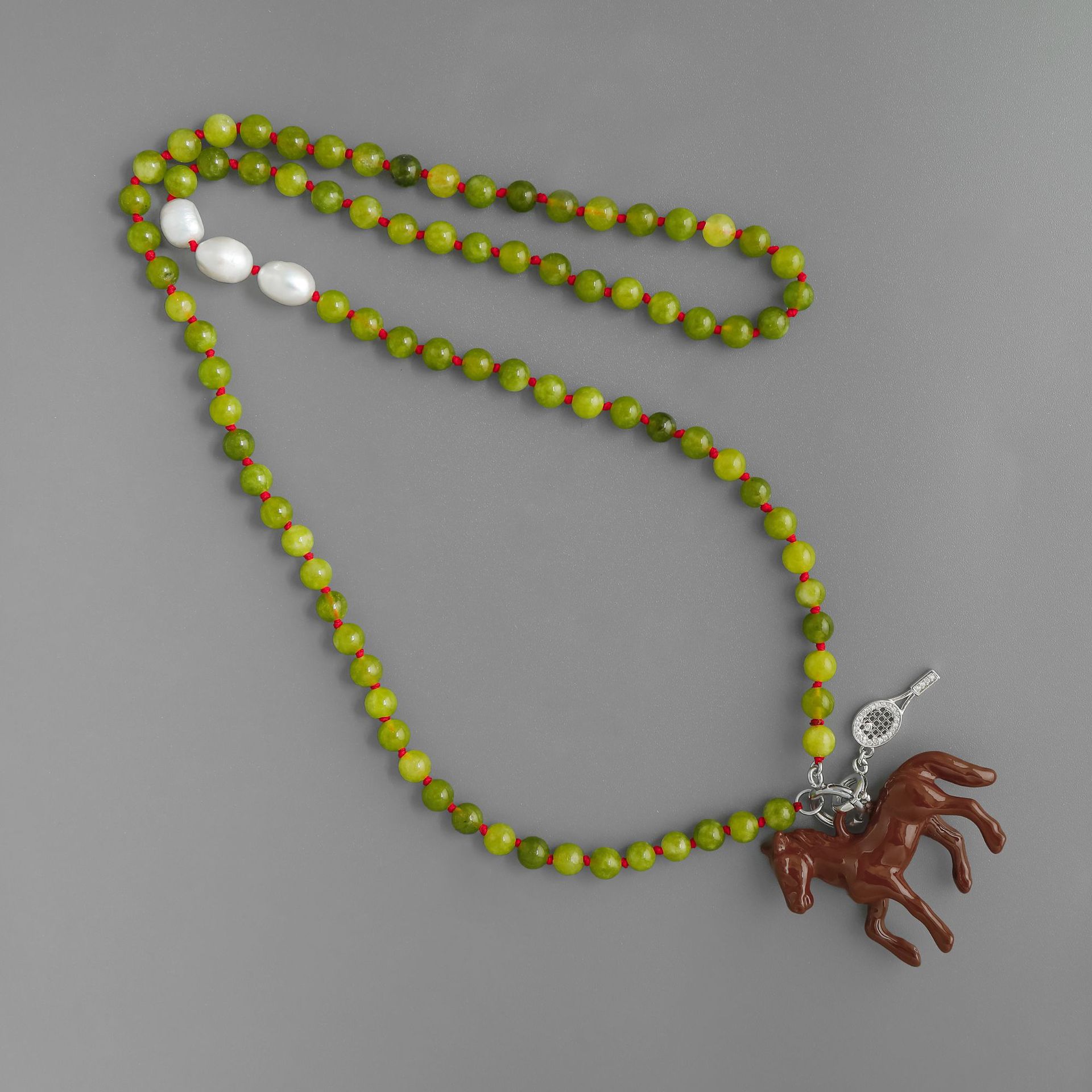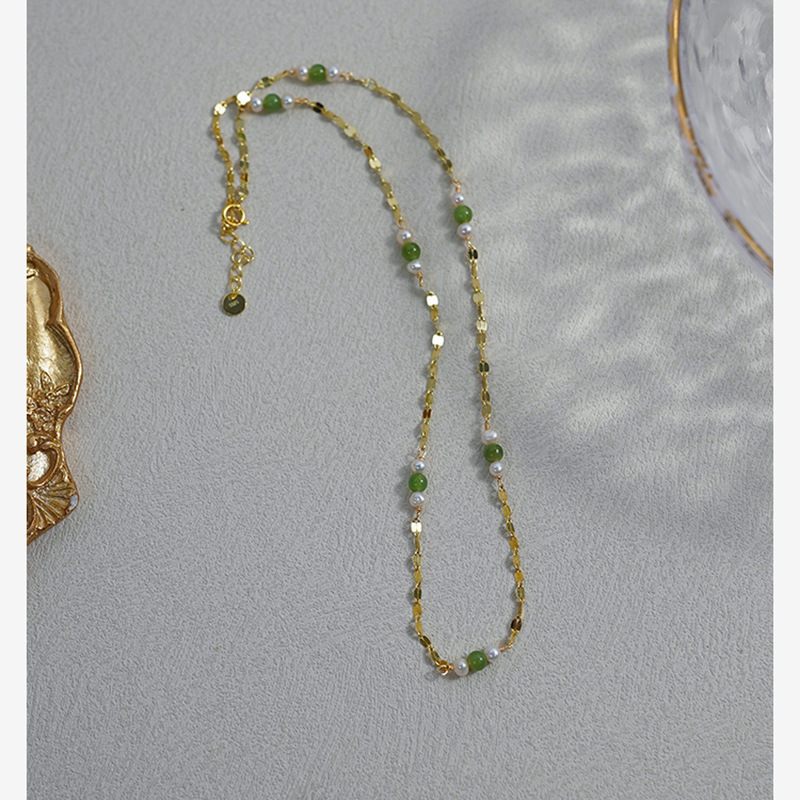 25Th Autumn and Winter New Pony Beaded Necklace Holiday Style Simple Niche Peridot Freshwater Pearl Clavicle Chain