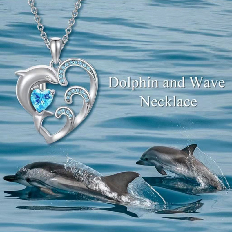 Cross-border Korean Fashion Women's Love Dolphin Diamond Necklace Korean Cute Heart Collarbone Chain Necklace Jewelry