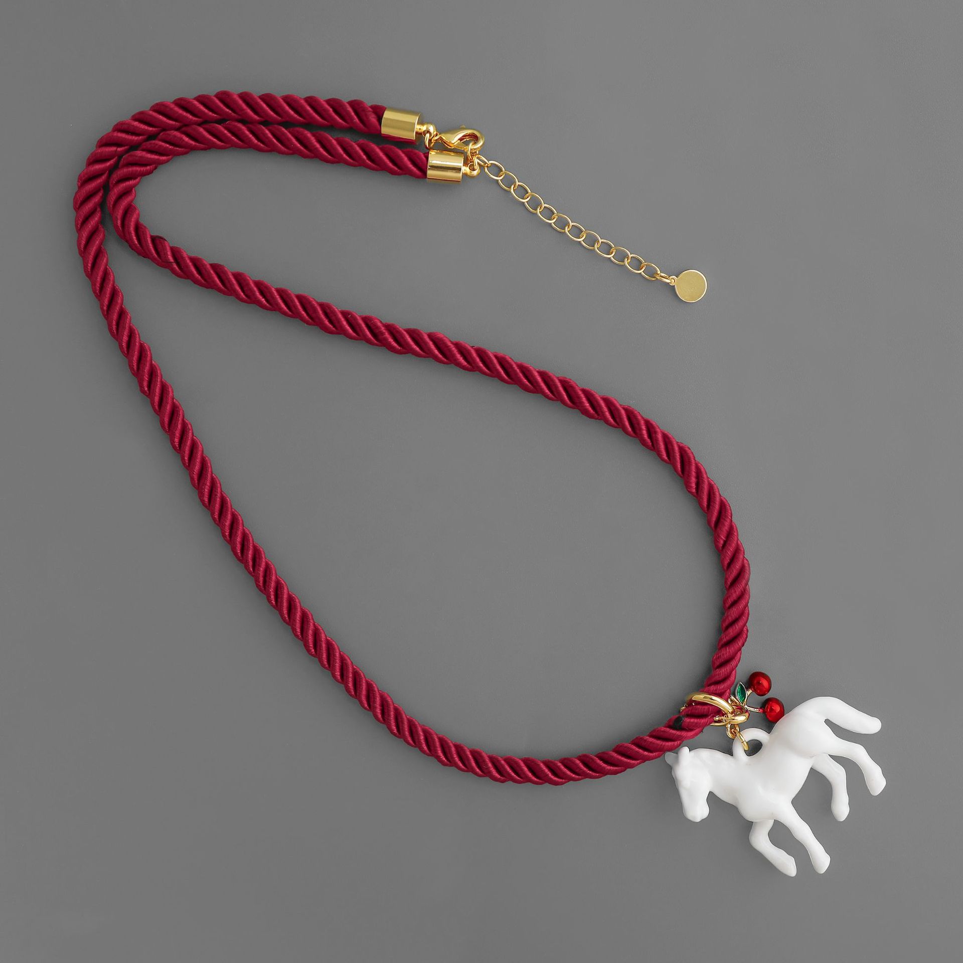 25 Years of Autumn and Winter Rocking Horse Necklace New Simple Niche Design Personalized Woven Resin White Horse Cherry Clavicle Chain