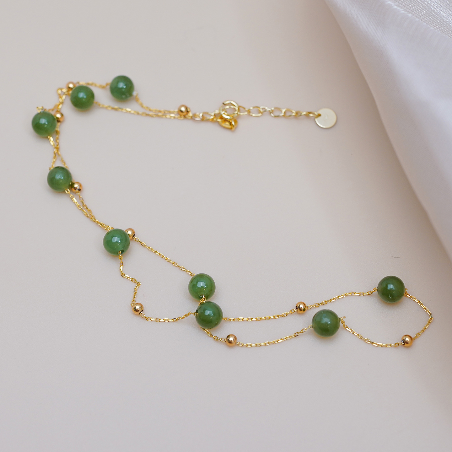New Chinese Style Retro Elegant Hetian Jasper Gold Bead Necklace 925 Sterling Silver Niche Baby's Breath Clavicle Chain 508127