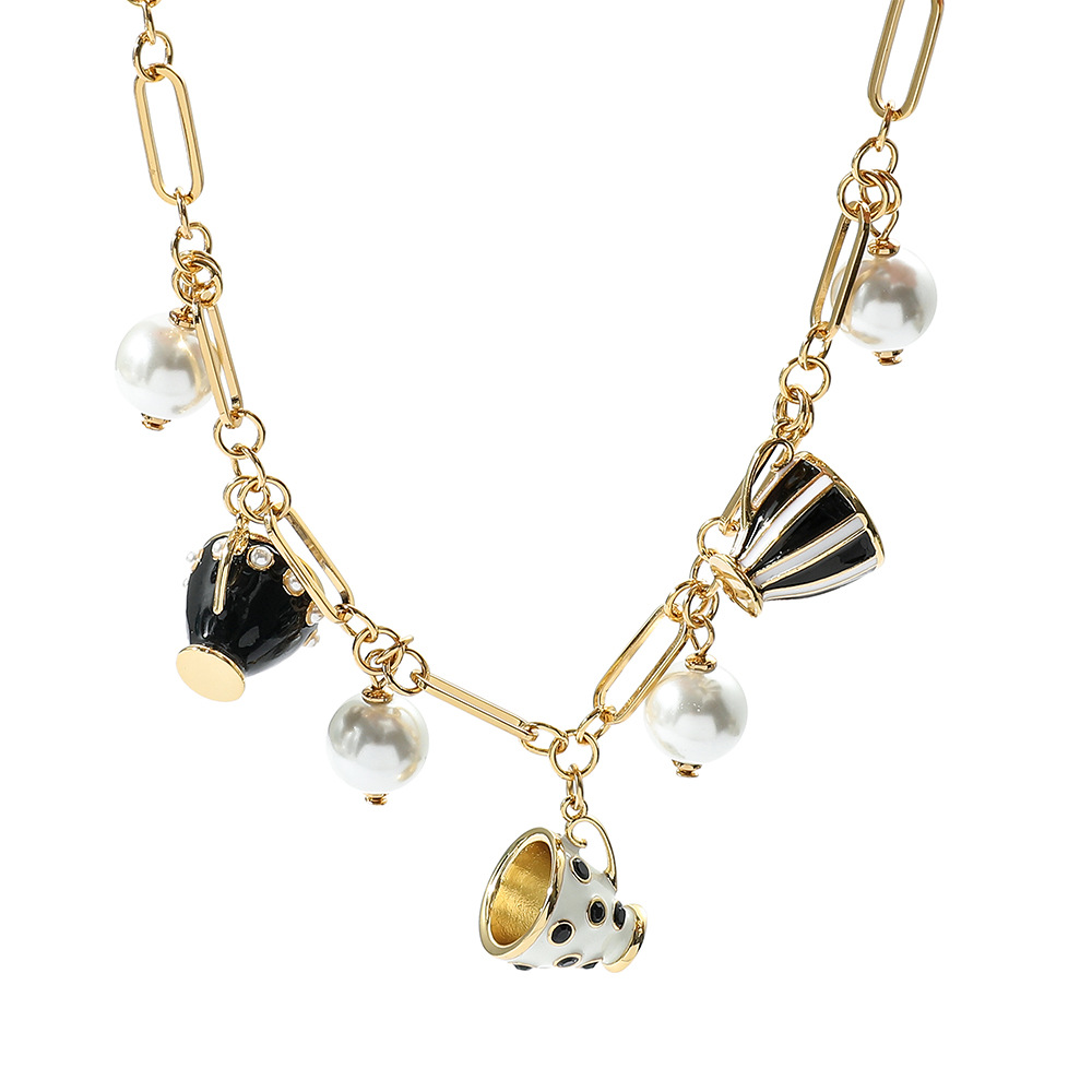 Cross-border European and American Fashion Tea Cup Pendant Pearl Bracelet Temperament Teapot All-match Bracelet Pendant Jewelry