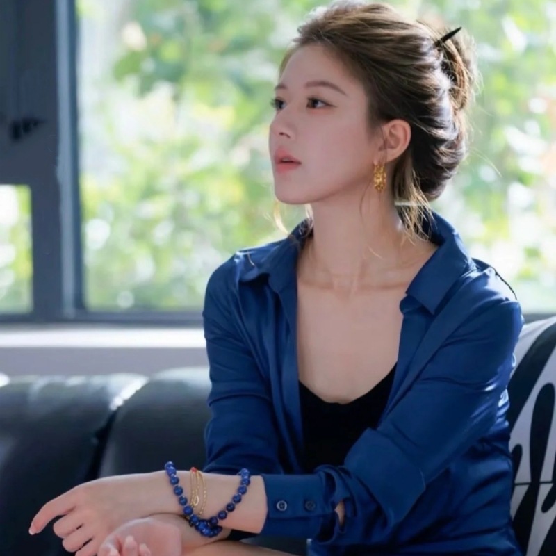 Let Me Dazzle Zhao Lusi and Xu Yan with the Same Bracelet, a Popular Simple Natural Stone Deep Blue Chalcedony Long Beaded Bracelet