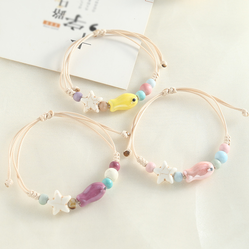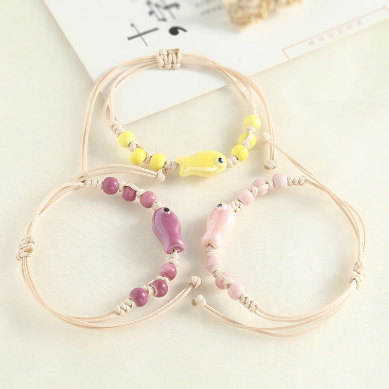 Sweet and Cute Ceramic Fish Bracelet for Girls, Small, Fresh, Simple and Versatile Hand-Woven Bracelets, Ready for Wholesale