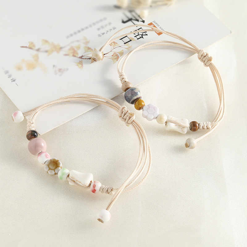 New Daisy Ceramic Braided Bracelet for Women, Versatile Artistic Beaded Bracelet, Chinese Trend, Textured Bracelet Wholesale