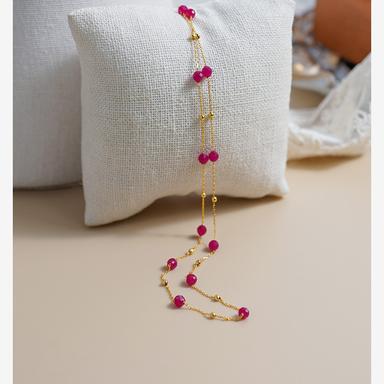 Niche Elegant Retro Red Corundum Gold Bead Necklace 925 Sterling Silver Sweet Light Luxury Collarbone Chain French Jewelry 41190