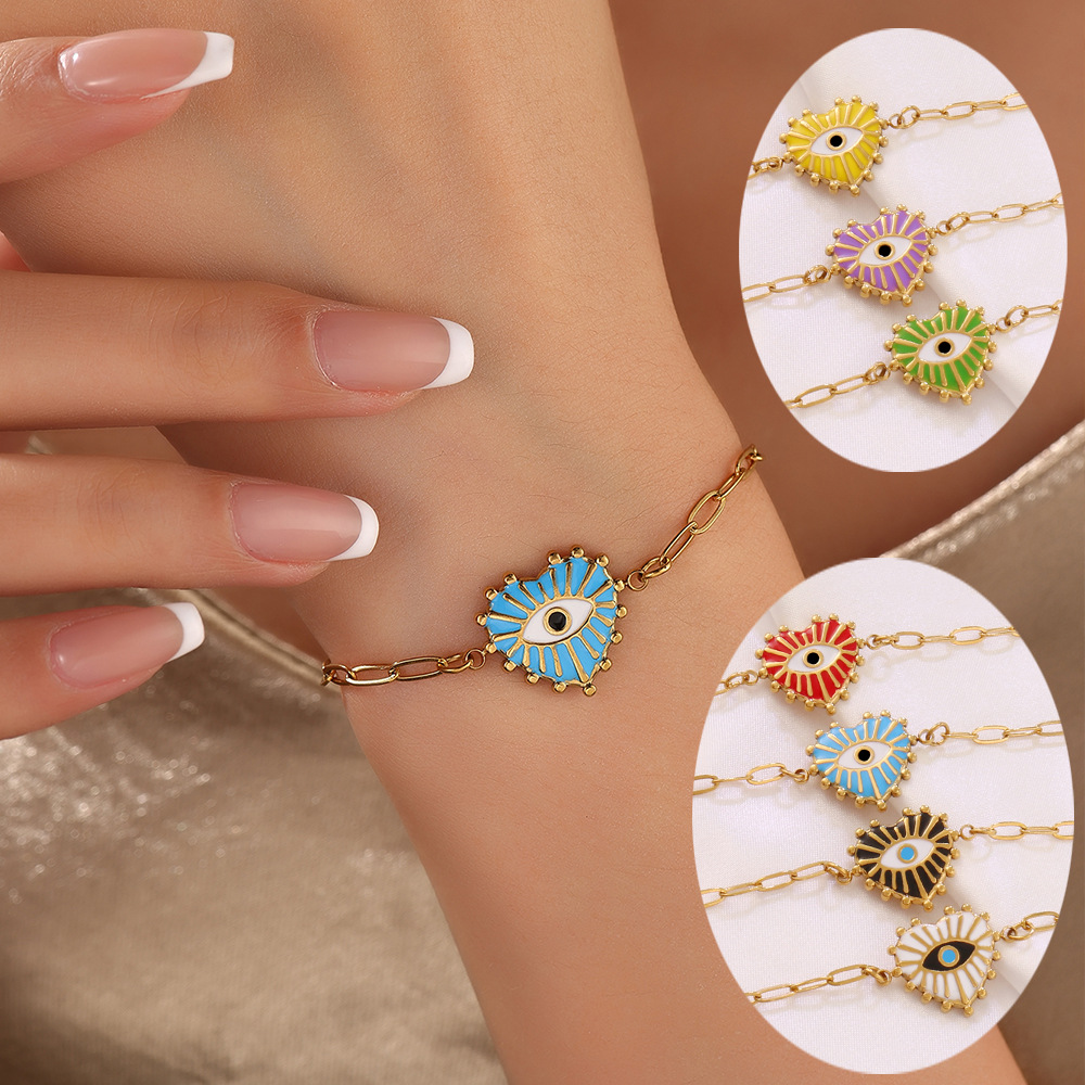 Cross-Border Titanium Steel Devil's Eye Pendant Bracelet Fashionable Stylish 18K Gold Plated Oil Dripping Heart Eye Bracelet for Women