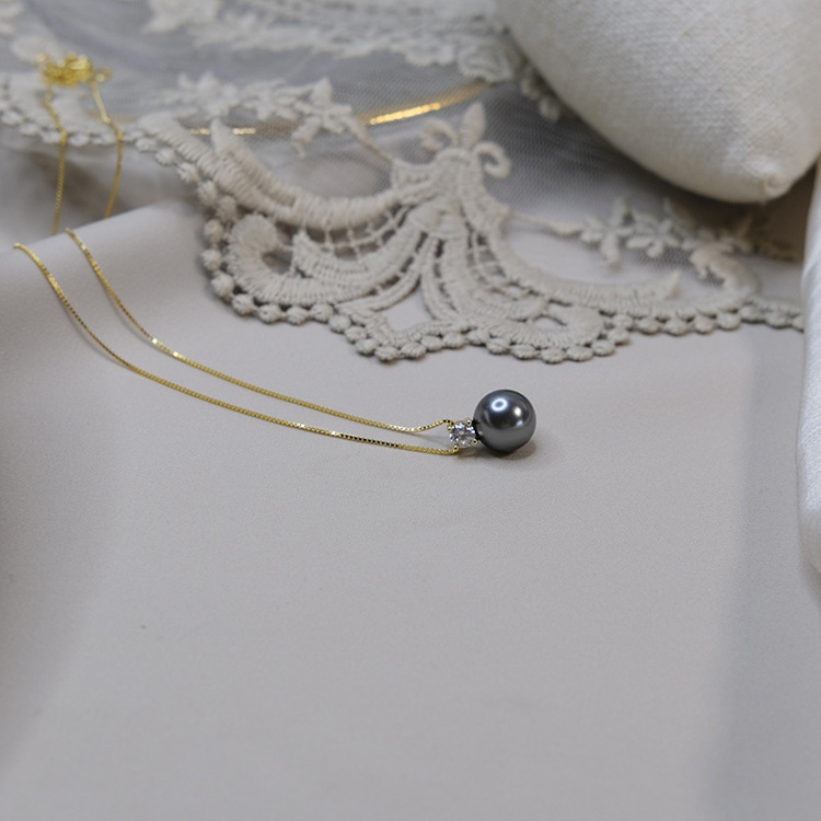 Yeyuan hand made Black Pearl zircon pendant necklace retro simple Japanese and Korean clavicle chain 925 silver 20473