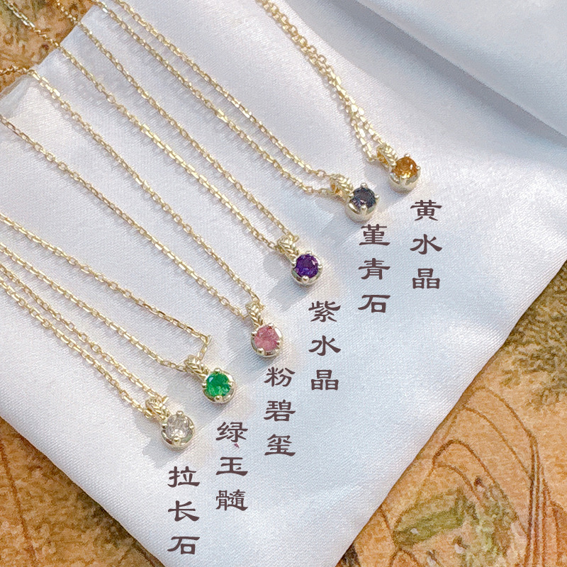 Japanese-Style Light Luxury 925 Silver Amethyst Labradorite Tourmaline Iolite Chrysoprase Citrine Small Gemstone Necklace