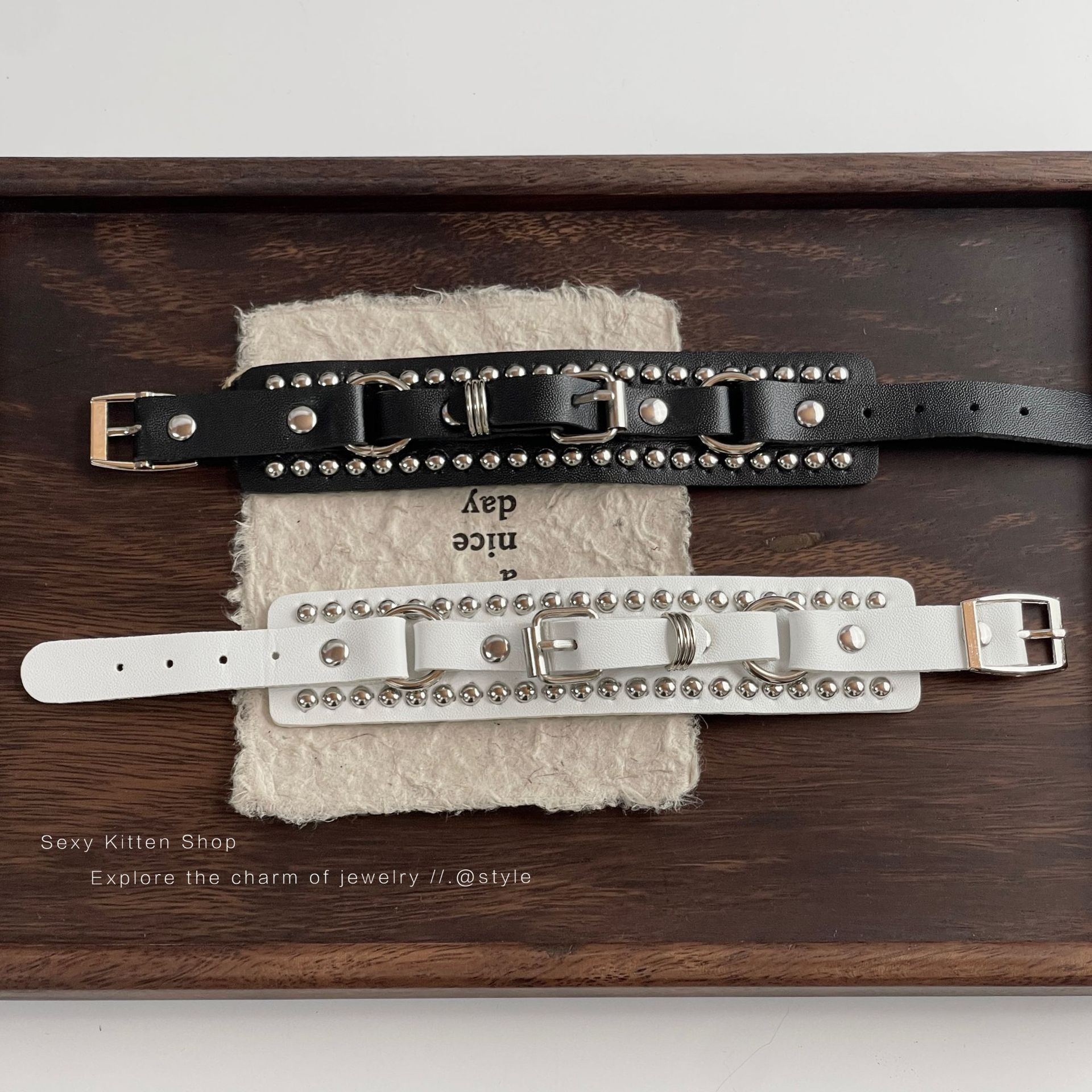 Niche Design Y2K Subculture Pu Leather Fine Glitter Bracelet Sweet Cool Hip-Hop Star Bracelet High-End Sexy Hand Jewelry