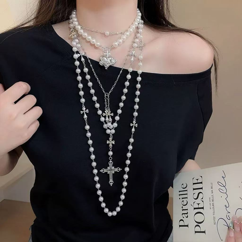 Cross Pearl Necklace Millennium Spice American Gothic Sweet Cool Asian Culture Niche Retro Punk Sweet Cool Necklace