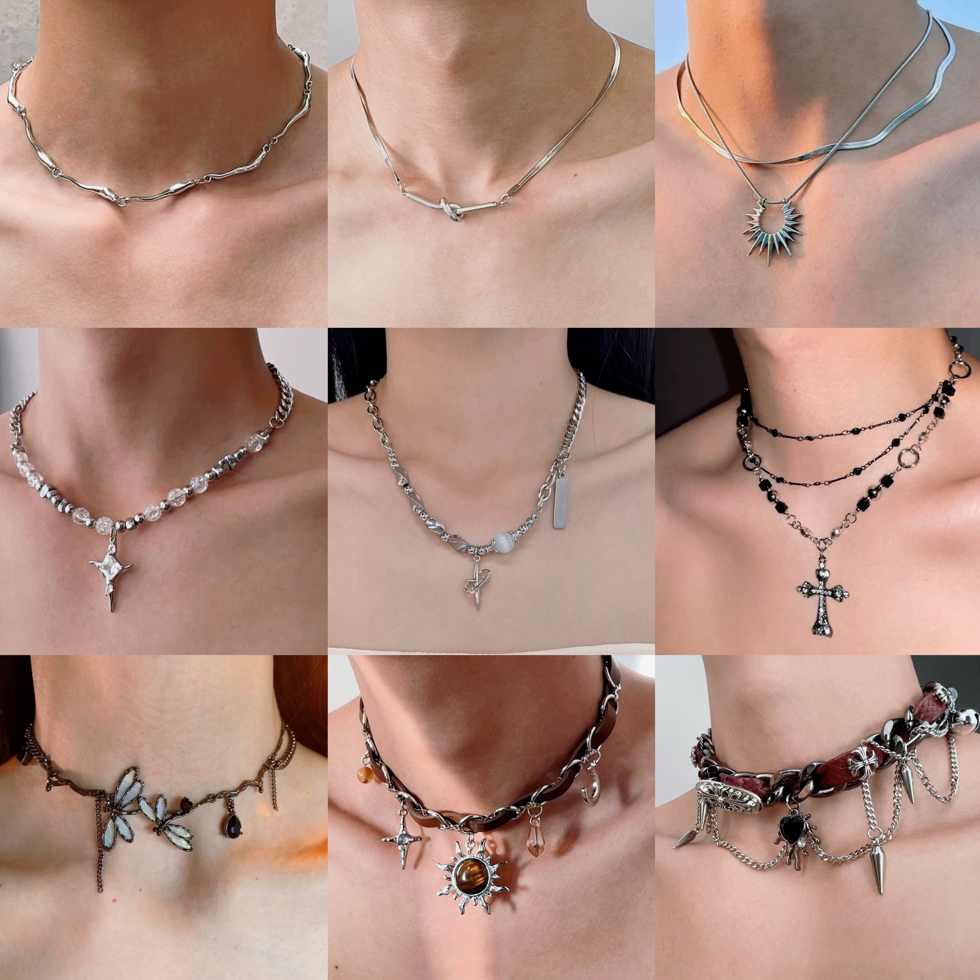 Irregular Stitching Cross Pendant Heavy Industry Personality Trend Subculture Sweet Cool Male Female Niche Hip-Hop Necklace Collarbone