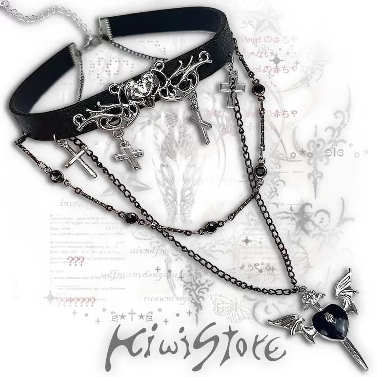 Gothic Punk Style Dark Sweet Cool Hot Girl Double-Layer Cross Necklace Niche Design Subculture Multi-Layer Clavicle Chain
