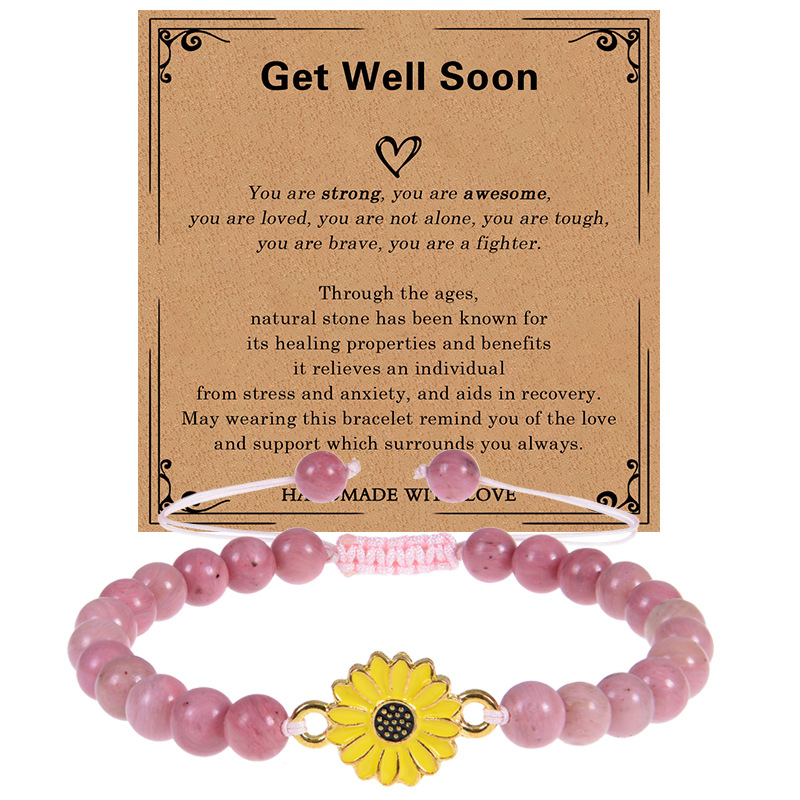 6mm Redwood Stone Bracelet Sunflower Sunflower Rehabilitation Bracelet Women get well soon Card Bracelet