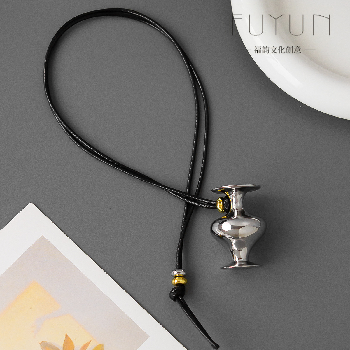 Autumn and Winter New Creative Vase Necklace Light Luxury High-end Sense Bright Face Cold Style Funny Bottle Adjustable Woolen Chain