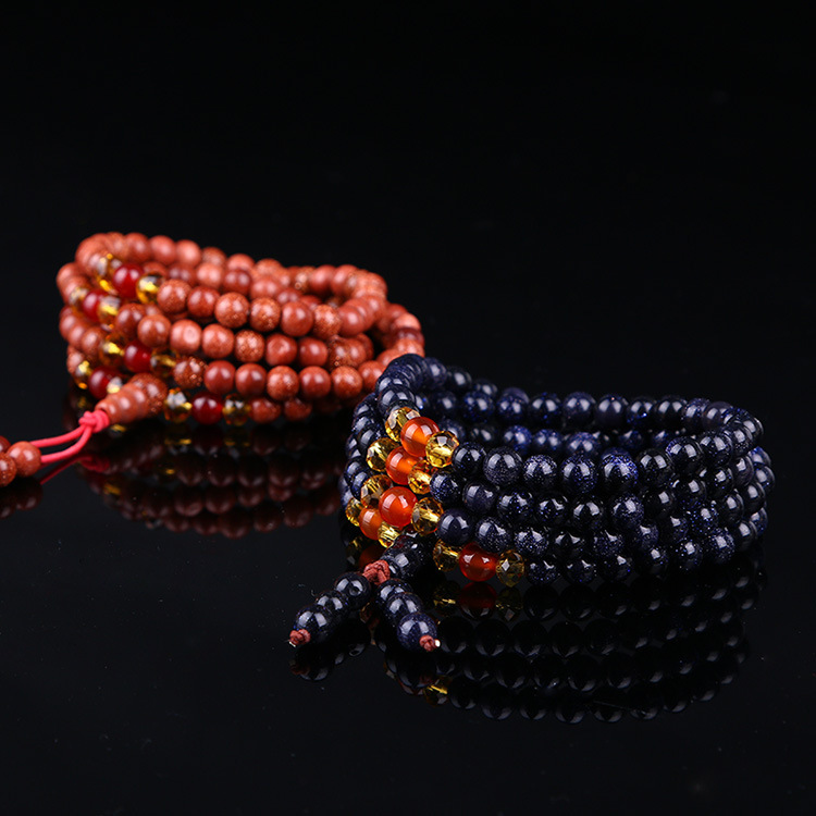 Gold Sandstone Blue Sandstone 108 Buddha Beads Bracelet Three-Way Buddha Head Bracelet Teaching Jewelry Scenic Spot Hot-Selling Attractions Street Stall