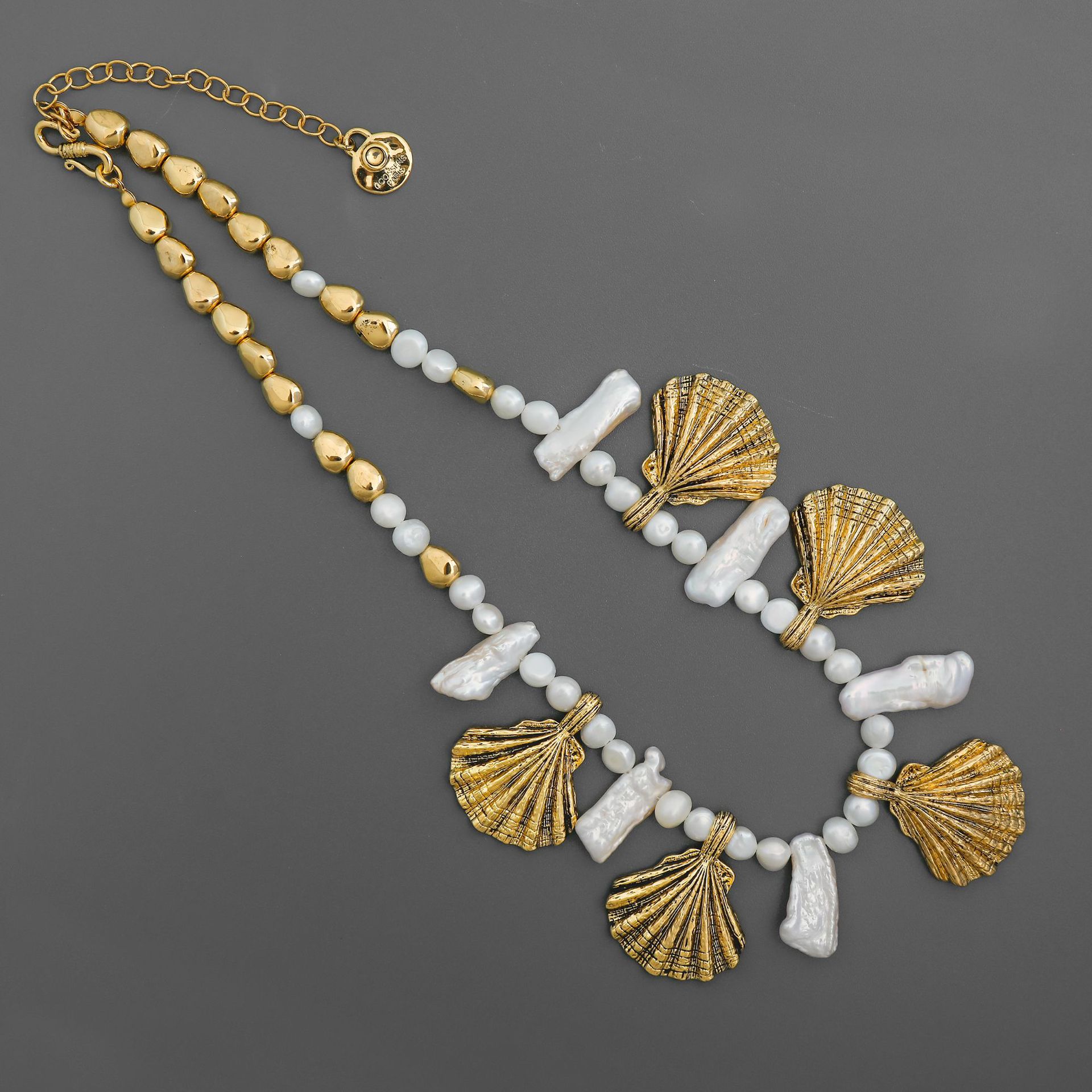 Goos* Home Shell Series Scallop Necklace French Retro Baroque Freshwater Pearl Shell Beaded Clavicle Chain