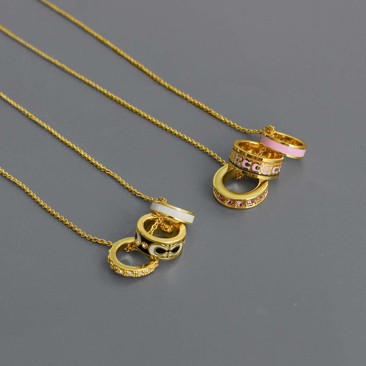 C Home Classic Three-color Ring Necklace Light Luxury Advanced Simple Chanel Style Enamel Color Glazed Gemstone Clavicle Chain