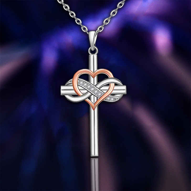 Cross-border hot jewelry wholesale cross pendant necklace female love heart-shaped 8-word religious belief clavicle chain jewelry