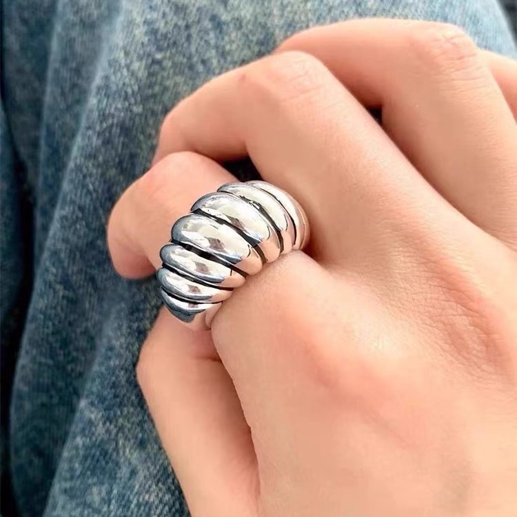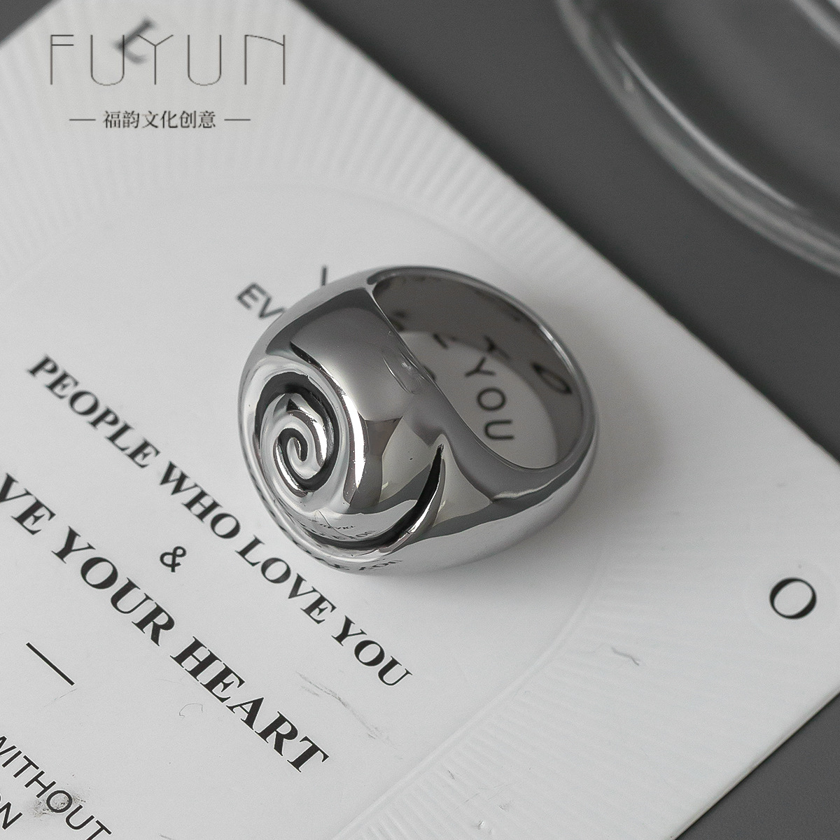 European and American Niche Design Spiral Ring High-end Light Luxury Retro Conch Style Bright Face Finger Ring Food Finger Ring