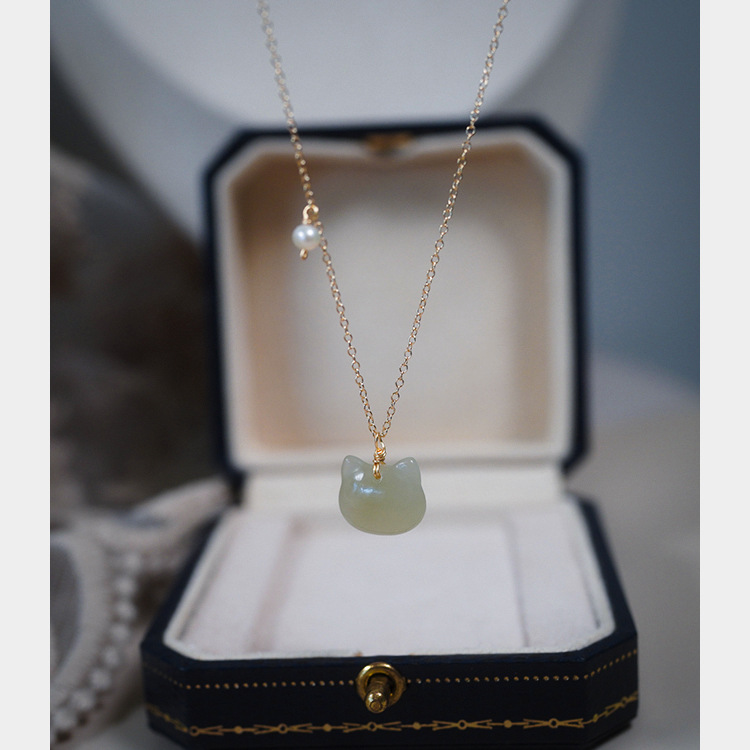 Ye Yuan original handmade Hetian jade cat pearl necklace temperament fresh clavicle chain niche female 30725