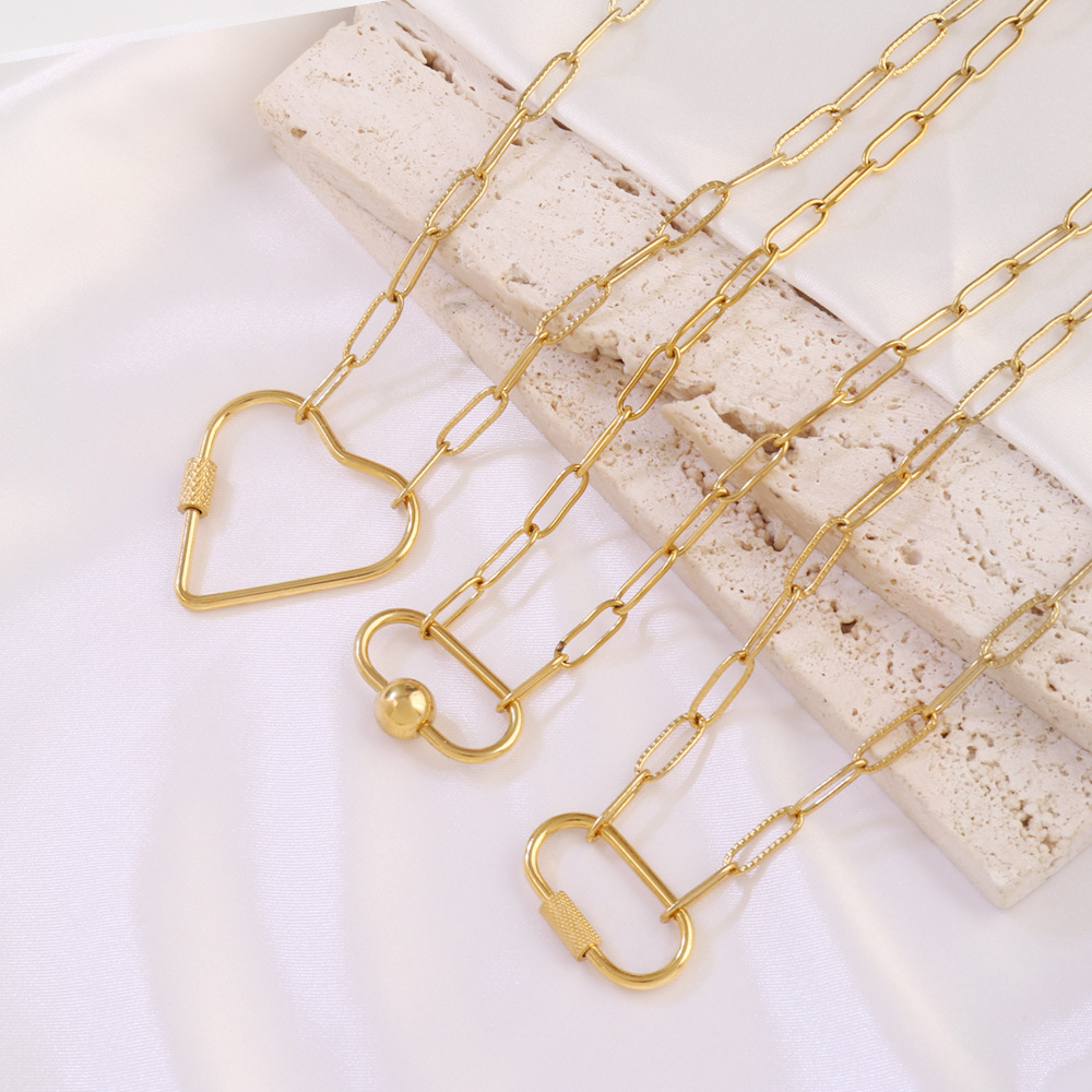 Fashion Stainless Steel Geometric Thread Universal Buckle Pendant Necklace Simple 18K Gold Heart Buckle Pendant Necklace Jewelry