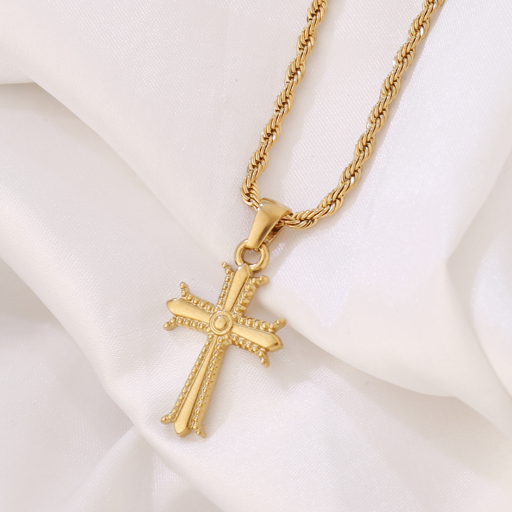European and American Retro Cross Pendant Necklace Fashion Simple Plated 18K Gold Stainless Steel Necklace Women's Jewelry Wholesale