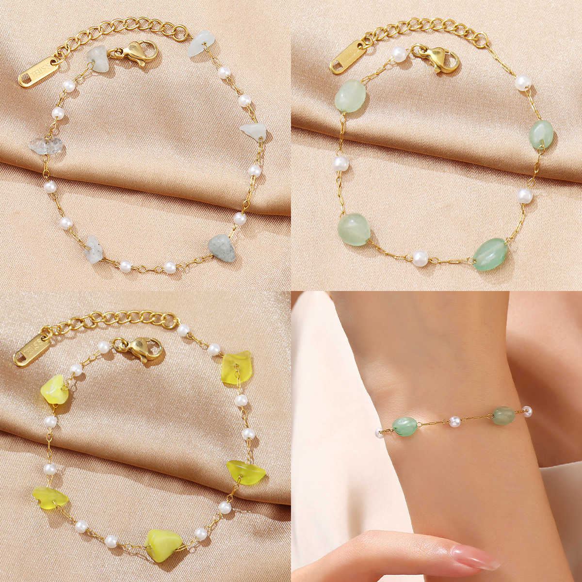Fashionable and Simple Natural Stone Pearl Bracelet for Women Ins Versatile Stainless Steel Special-Shaped Stone Handmade Beaded Bracelet for Women