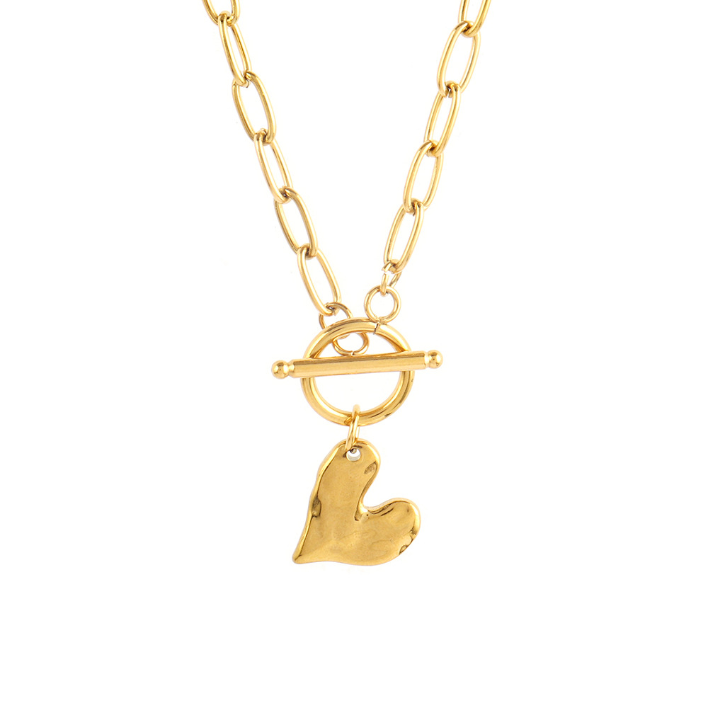Cross-border stainless steel love pendant necklace fashion simple 18K gold plated heart-shaped OTbuckle necklace jewelry wholesale