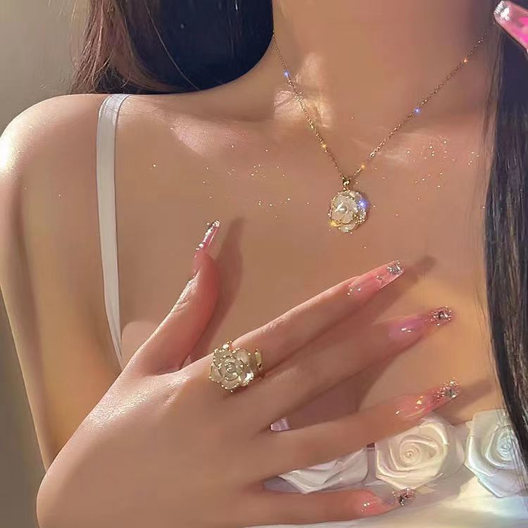 White tea fresh and happy ~ Camellia three-piece romantic temperament clavicle necklace for women elegant design 2022 New