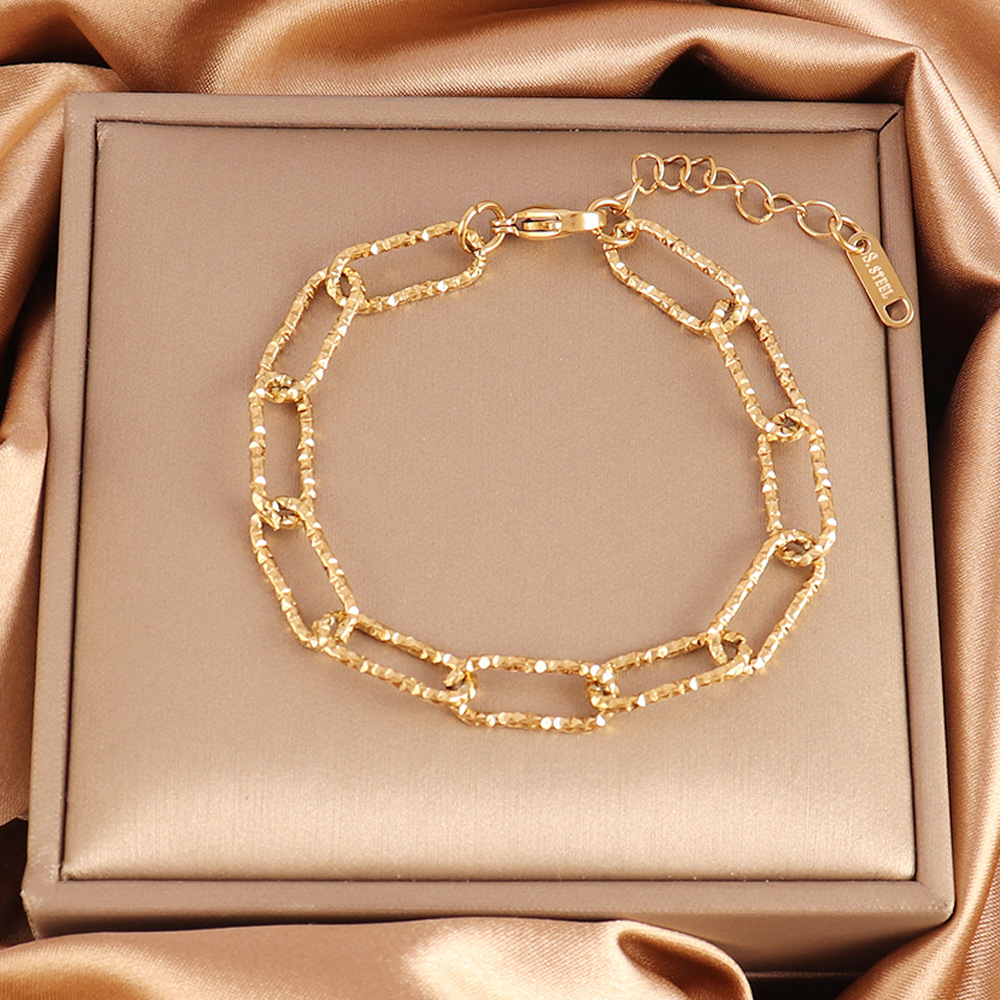European and American cross-border titanium steel non-fading embossed bracelet fashion ins simple stainless steel 18k gold bracelet for women