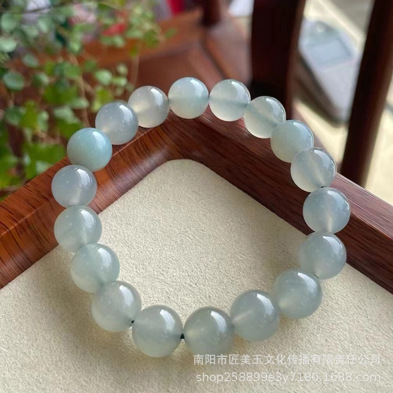 Natural Curilan Round Bead Jade Bracelet New Haze Blue Single Circle Bracelet Loose Bead String Ornaments for Men and Women Factory Wholesale