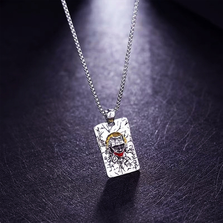 Ins European and American Exaggerated Niche Clown Necklace Men and Women Stylish Hip-Hop Portrait Playing Card Pendant Long Accessories Trendy