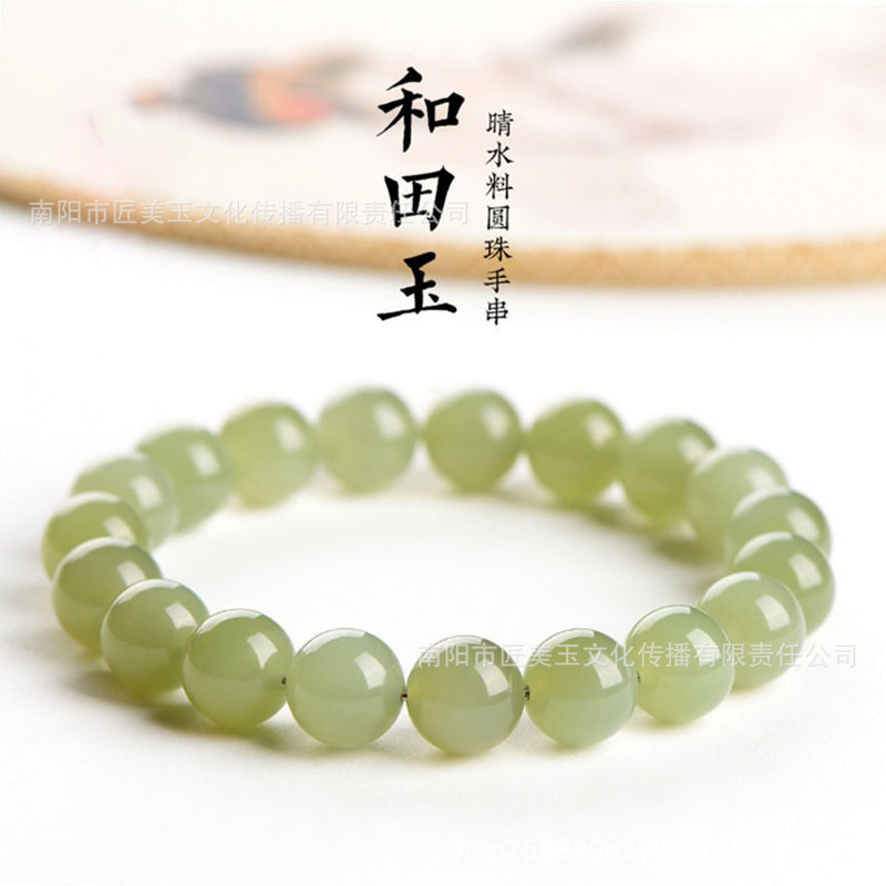 Jiuya Crystal Natural Xinjiang Qingshui Hetian Jade Bracelet High Ice Type Qingshui Hetian Jade Round Bead Bracelet Wholesale