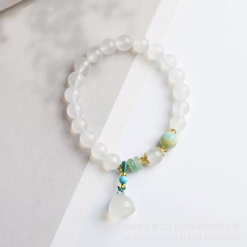 Natural Lychee Jelly White Agate Round Beads Lotus Bracelet Good Luck DIY Charm Chalcedony Bracelet Bracelet