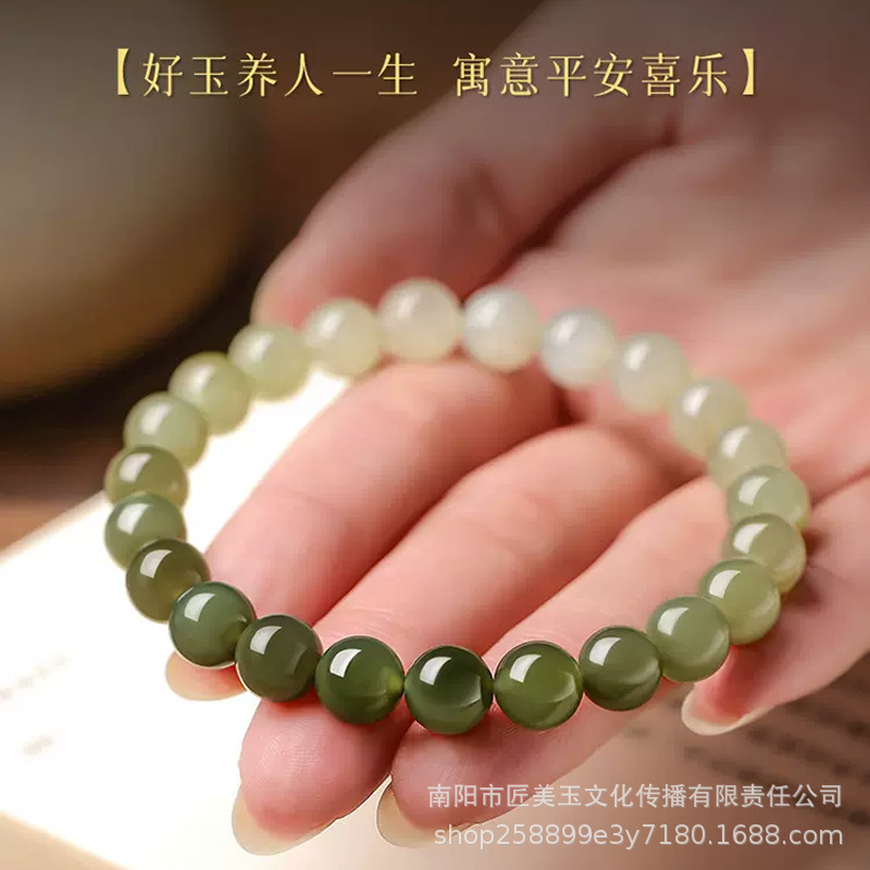 New Natural Hetian Jade Round Beads Bracelet Xinjiang Gradient Yellow Mouth Bracelet for Men and Women Jade Jewelry in stock Wholesale