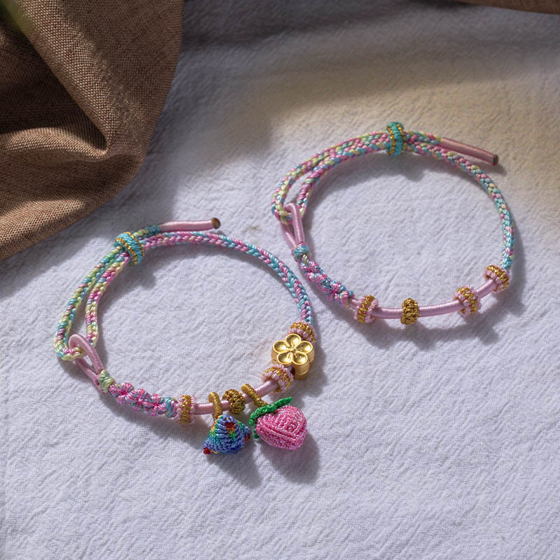 Hand-woven Dragon Boat Festival colorful hand rope ladies can wear beads DIY rice dumplings strawberry lotus pendant rope bracelet